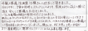 分かりやすく、丁寧な説明とスタッフとしてよりも、家族のように故人に接して頂き、安心して葬儀をお任せしました。