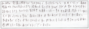 私自身が葬儀に関わるのが今回初めてで、全く何もわからない状態でしたが、最初の電話からきちんと対応してくださり、段取りも次に何をするのか、何が必要かを分かりやすく説明して下さり、ちょっとした質問やお願いしたい事も、その都度対応してくれて、式が終わってからの事まで教えて頂き、本当にありがたかったです。温かく見送る事ができて本当によかったです。担当して下さった土井さんには本当に感謝しています。ありがとうございました。