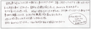 主人も喜んでいると思います。始めに担当いただいた土井さんも、筆意でいただいた新谷さんも事細かに配慮いただい、子どもたちも、親戚一同も喜んでおりました。